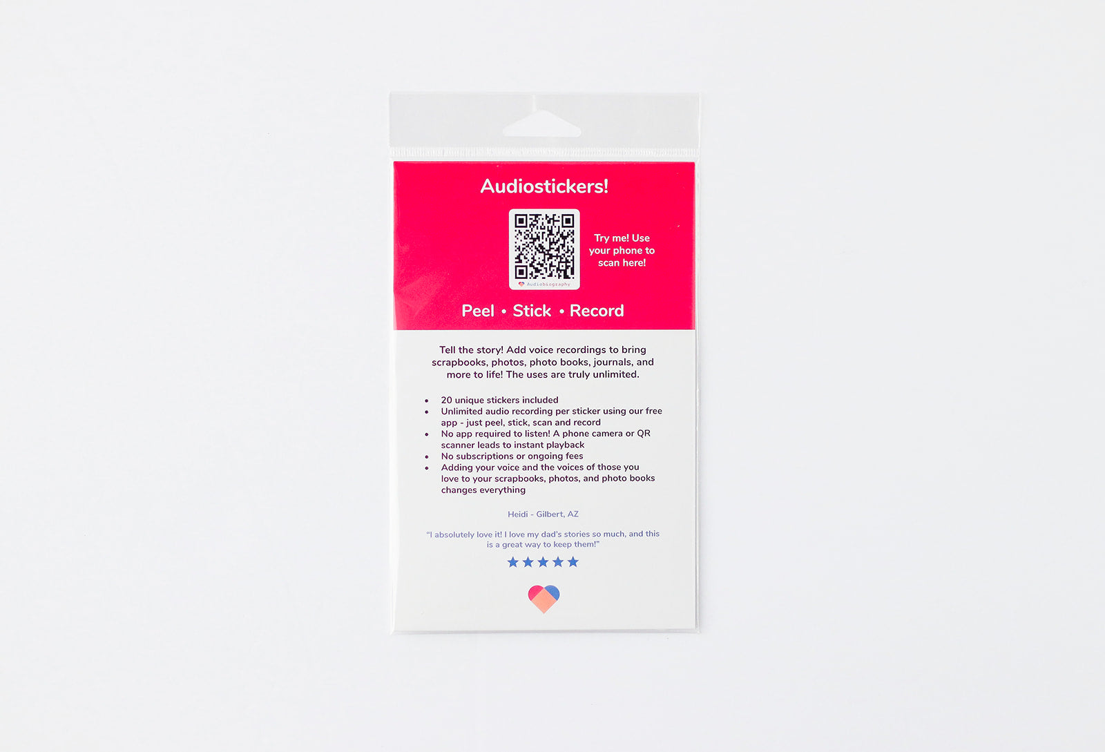 I ordered these stickers for our young women's group to make and send Valentines, and I couldn't be happier with how they turned out. The girls had so much fun decorating their cards and then applying the stickers to record their audio. I know their grandparents, and those who receive their cards, will be so excited to hear the girls' voices. Ever since my husband's mom passed away unexpectedly without a shred of her voice recorded anywhere, I have come to realize the value in a simple voice recording. This company and its products makes it simple and easy to make sure that a loved one's voice lives on. And the comfort that that brings is priceless.