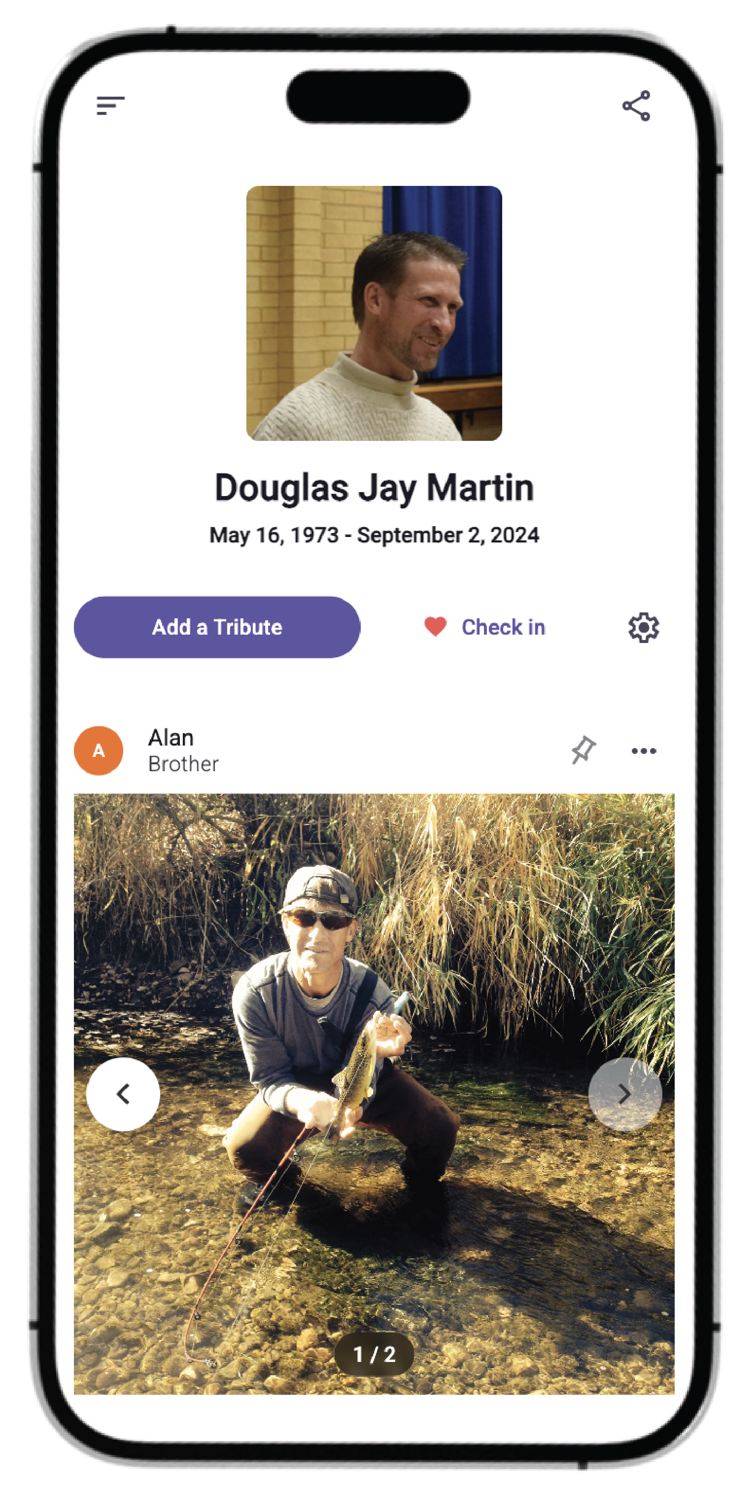 Memorial is designed to be shared and contributed to over time. As you and others visit the Memorial, we encourage that new Memories are shared, you check-in on that person, and reminisce on what others have added. It is the best tool for remembering the best moments of a loved ones life.